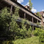 Nejsme tu sami. Místo za posledních pár let proslavilo několik dobrodruhů, kteří na net bez uvážení vyvěsili fotky, videa i souřadnice. Zanedlouho tedy spatřujeme dvě početnější skupinky lidí, dvojici venčící psa a paní, přiskakující k návštěvníkům, kteří „náhodou“ jeli kolem a zabloudili – vlastně stejně jako my – za bránu, aby jim vyprávěla o historii. Po krátké poradě v torzu jakéhosi zastřešení vyrážíme najít vchod do první z budov. Štěstí máme hned několikrát. Díky vysoké návštěvnosti jsou bednění dveří i oken v rozkladu. Hned vzápětí nacházíme uvnitř místnost s úchvatnými okny a drátěnou postelí. To je to, co jsme hledali. A za ní je dlouhá chodba, na jedné straně osvětlená okny.