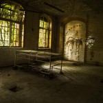 Ve vyšších patrech konečně nacházíme proslulé operační sály. Ty na kraji budovy mají úžasné klenuté stropy a jsou kruhového půdorysu. Ty uprostřed mají zase prosklené stěny a v nejvyšším patře i stropy. Páchne tu dezinfekce a mezi střepy z okenních, stropních i dveřních výplní se povalují hadičky od kanyl. Operační lůžka a světla z fotografií dřívějších průzkumníků ale hledáme marně. Místo nich na některých místech nacházíme ohořelé kostry lůžek. Bylo tu před námi příliš mnoho škodných. Některým se stačilo zapsat na zdi, jiní se potřebovali podepsat jinak.