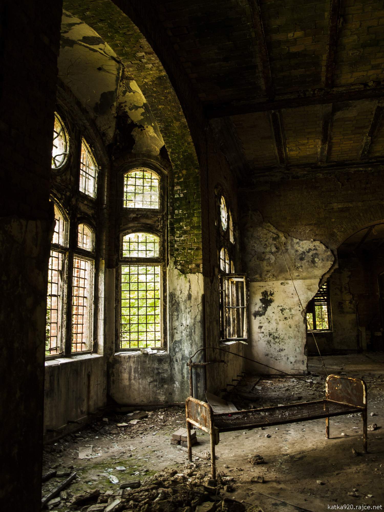 Ty budovy jsou vlastně hlavně o chodbách. Díky nim se vnitřní prostory zdají být nekonečné. A jak se záhy přesvědčujeme na vlastní kůži – není těžké se v nich ztratit. Místnosti po nějaké chvíli splývají, na každém rohu je schodiště a všude jsou zotevírané dveře. Působí to jako vábnička duchů pro neopatrné návštěvníky – jakoby bývalý pacienti, doktoři i sestry otevřeli do místností a tiše nabádali k návštěvě. Ne, hlasy tu slyšet nejsou, ale šero a chladno tu je a úzkost je cítit z každého temnějšího zákoutí. Držíme se aspoň ve dvojicích – o nic nejde, ale člověk nikdy neví. Ve vyšších patrech dokonce zůstaly lednice a pár prázdných skříněk, ale střecha je na mnoha místech pořádně propadaná a ztrouchnivělá, že už nemá cenu dál pokračovat. Je čas zajít do další budovy.